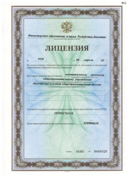 Полное наименование образовательной организации* Муниципальное казенное общеобразовательное учреждение "Кунзахская основная общеобразовательная школа"