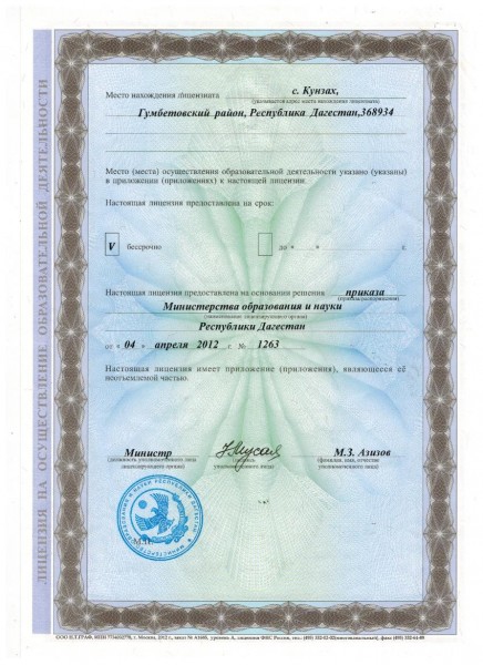 Адрес местонахождения образовательной организации* 368934, РД, Гумбетовский район, с. Кунзах
